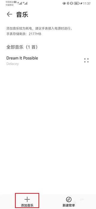 3、在音乐页面,点击屏幕下方【添加音乐】选项;