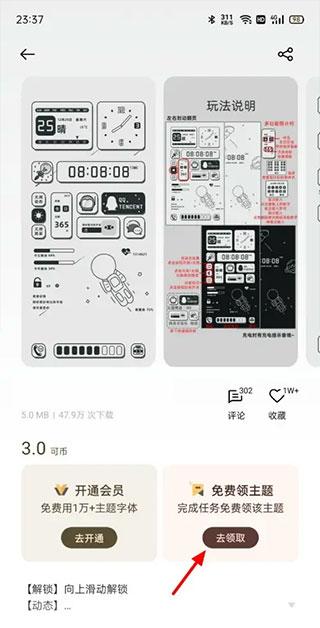 2、点击下方的免费领主题下的【去领取】按钮
