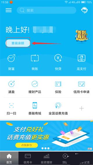 1、打开建设app后,在首页左上角点击“查询余额”。