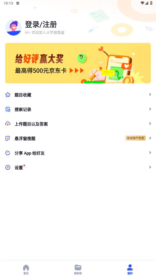 1、在本站下载安装好大学搜题酱app,如图所示,点击我的板块可以看见悬浮窗搜题功能(目前只支持安卓用户);