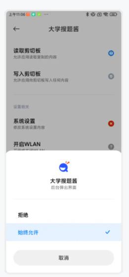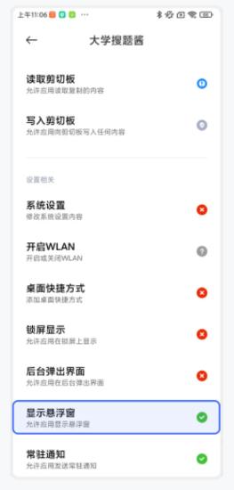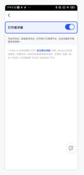 小米、vivo手机需先在系统中打开大学搜题酱悬浮窗权限后,再打开本页面中的开启悬浮窗按钮。