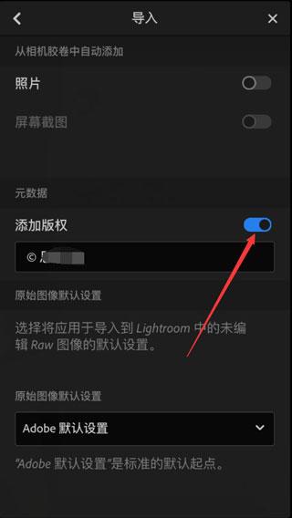 4、然后进入到导入界面后,下面有一个添加版权,打开它,里面的水印名字可以更改。