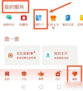 在主题页面中找到我的按钮,在我的服务中找到混搭DIY,点击进入。