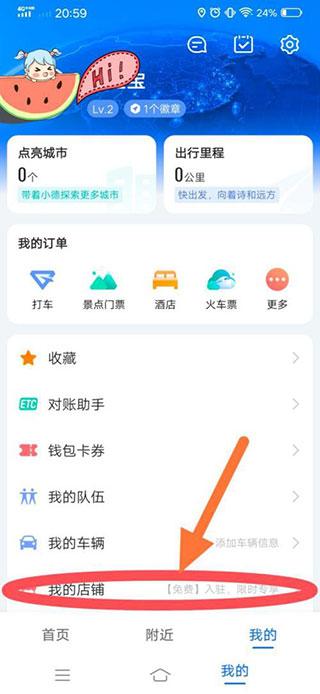 1、首先打开“高德地图”,在页面底部点击“我的”,然后点击“我的店铺”,如图所示;
