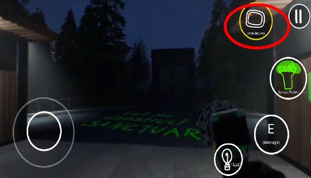 2、点击play进入游戏,在主界面,左侧是虚拟键控制前后左右移动,右侧则E表示射击开门,靠左边的是换灯具,照亮,最上面的是抓取碎片。
