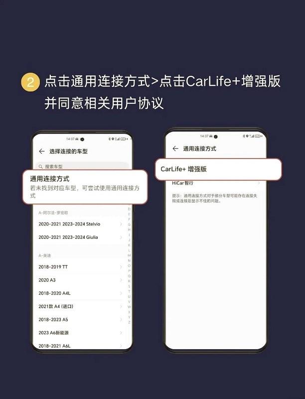 2、在车机桌面找到并点击“CarLife+增强版”应用。如果你找不到对应车型,可以尝试使用“通用连接方式”。