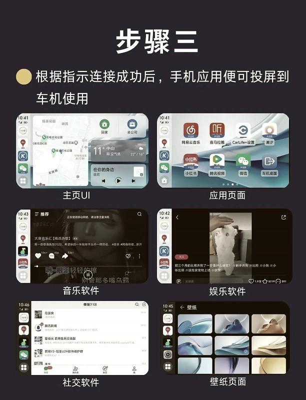 1.智能互联:可以将用户的手机与车内的智能娱乐系统连接,实现手机与车机的智能互联,使用户能够通过车载屏幕访问手机的应用、通讯、导航等功能。