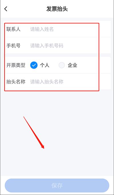 4、然后就是填好发票抬头,里面包括:联系人、手机号码、开票类型以及抬头名称。