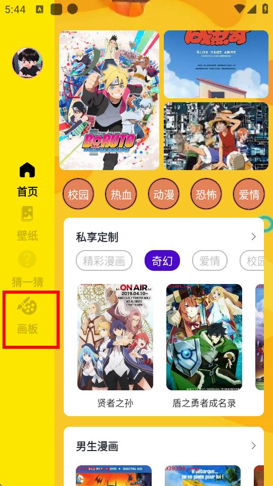 用户进入这款app,在软件首页点击左下角的“画板”