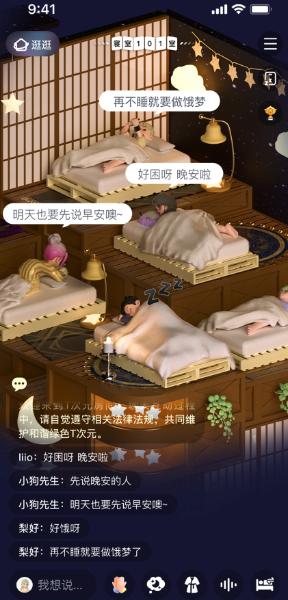 用户可装饰专属虚拟房间,邀请好友“面对面”聊天,模拟线下聚会场景。