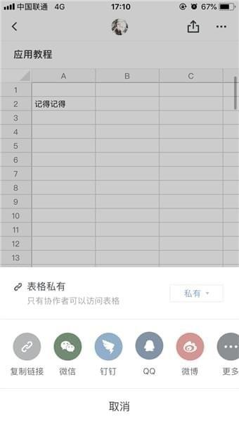 4、档共享功能,可以就那个编辑的文档以及表格分享给同事、上级以及下属