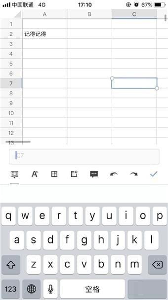 以创建表格为例,点击需要编辑的格子将会弹出编辑窗口,这时选择第一个“键盘”图标会调用输入法
