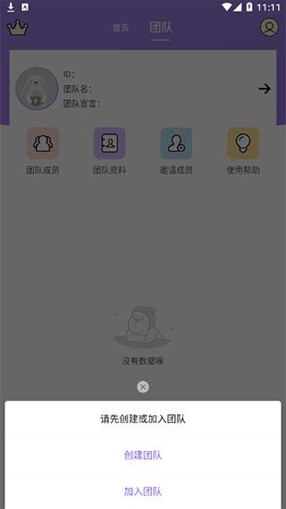 4、点击第二个“团队”专区,可以创建自己的团队、邀请成员