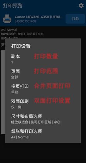 许多打印选项(包括份数,分页,页面范围,纸张尺寸,纸张类型,纸盒,输出质量等)