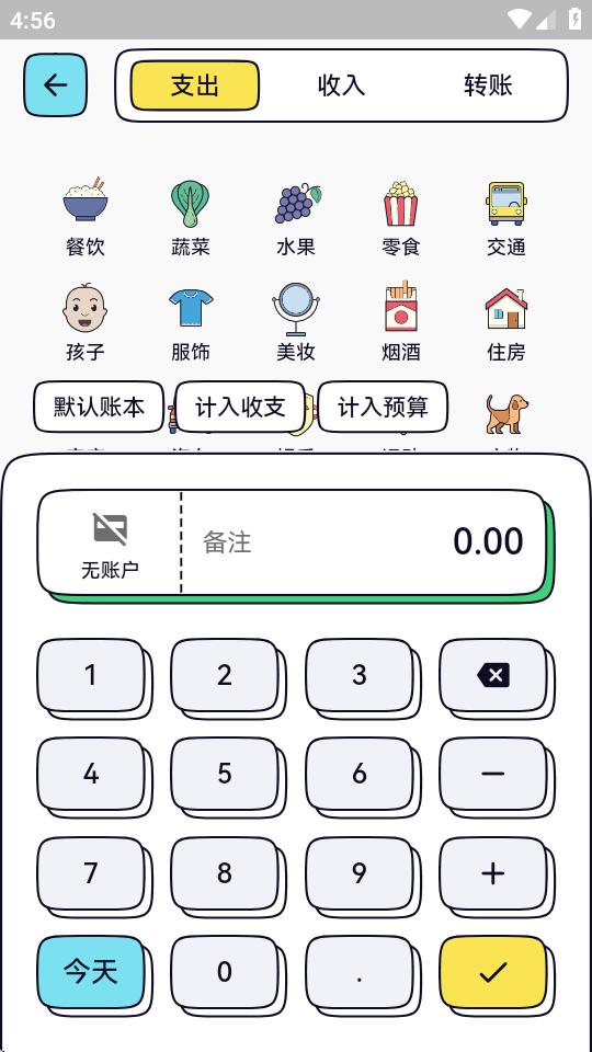 支持图标化记录(如购物、餐饮等),记账更生动。