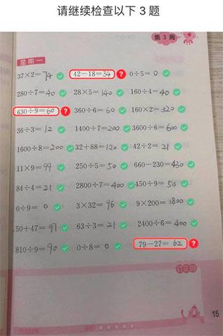 1、作业检查:手机拍摄数学、语文、英语作业,一秒完成检查,并提供正确答案。