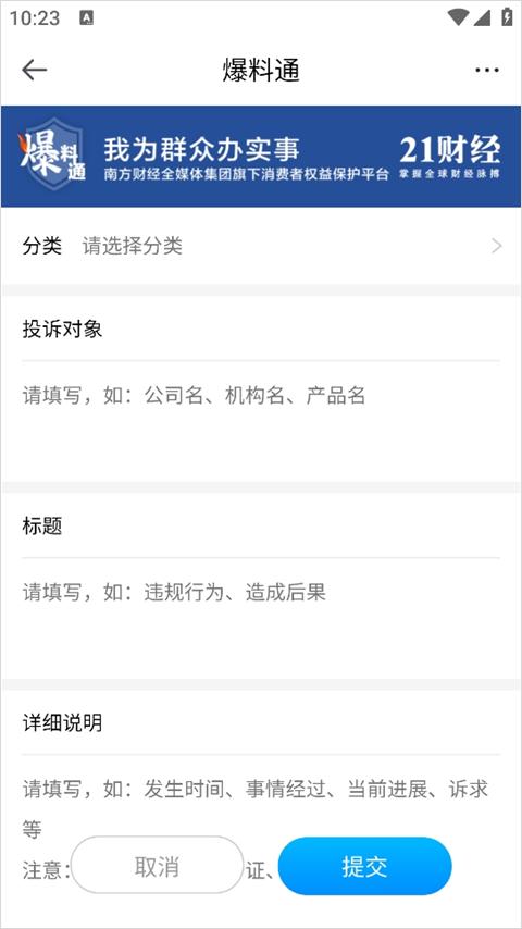 2、在“爆料通”界面选择“我要爆料”按钮。