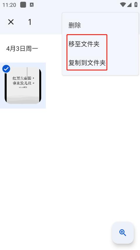 3、勾选上图片,还可以进行移至文件夹和复制到文件夹操作。