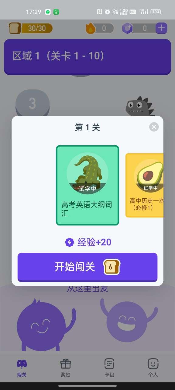 5.添加到卡包之后再进入闯关界面并点击我的头像进入第一关,然后之前添加的卡包就会变成一道道关卡