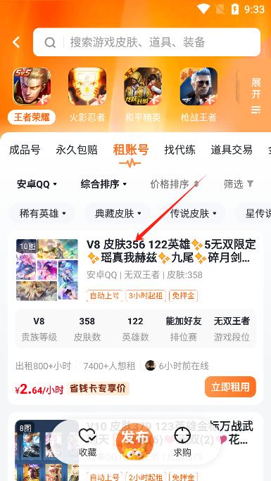 2、在这里选择你需要租赁的游戏账号