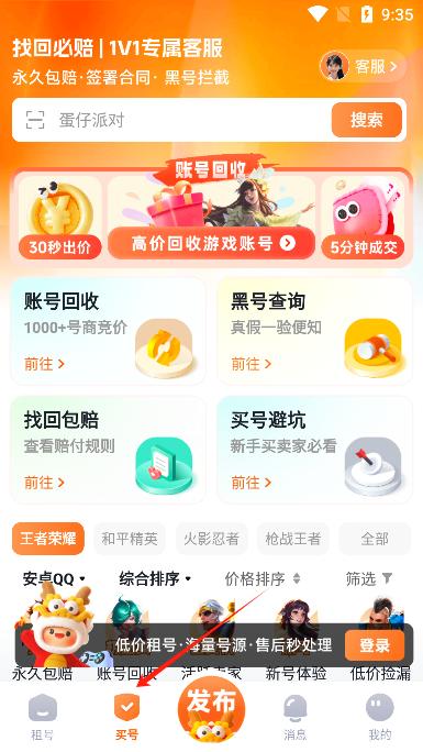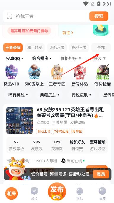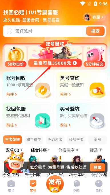 1、低价租号:王者荣耀、吃鸡、火影等高端大神号租金低至0.1元一小时,让玩家可以畅玩一整天。