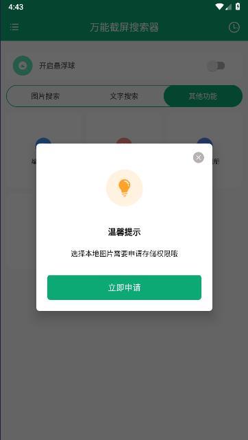 万能截屏搜索器是一款功能强大且易于使用的截图搜索工具,能够帮助用户节省时间和精力,提高工作效率。软件界面简洁无广告,用户可以通过点击悬浮球快速截屏并搜索相关信息,还能提取图片中的文字并转换为可编辑文本。用户可以根据个人使用习惯配置悬浮球功能,并查看历史记录。该应用方便实用,可满足用户的各种需求,欢迎下载使用。