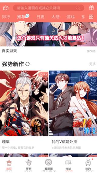 2、在首页,有书单、排行以及软件推荐的各种精品漫画;