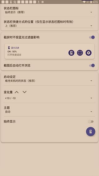 相信很多人看多了手机或者电脑总是会感觉到视觉疲惫吧?大家知道是什么在作祟吗?其实这也是一个热知识了,就是我们手机是会有很蓝光的,因为手机屏幕的蓝色眩光容易伤害视网膜,造成眼睛疲劳,视力减退,近视,黄斑病变,白内障等眼部疾病,日对我们眼睛的伤害还是很大的,为了能够帮助我们缓解这个体验感,今天小编带来了一款手机必备的蓝光过滤器,它能够为我们有效的减轻蓝色光,缓解眼睛疲劳。蓝光过滤器采用优化算法,过滤效果自然,让用户不必降低屏幕亮度就能有效减轻蓝色光,屏幕内容更加清晰可见。同时,它还拥有着强过滤模式,还具有防屏幕侧视偷窥效果。此外,它的操作夜非常简单,没有多余后台操作,相比其他同类应用,耗电量极低,几乎不会占用系统资源。还在等待什么?还不给手机加上一道防护膜吧。