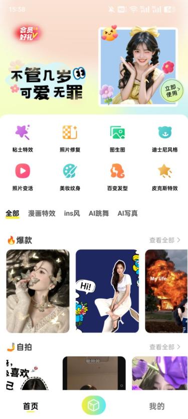 美颜p图修图是一款可以修图的软件,里面功能丰富,包含照片修复、百变发型、AI写真、照片变活等等,无论您是想要尝试新发型、新妆容,还是想要为您的自拍增添一些独特的特效,美颜P图自拍都能满足您的需求,快来下载一键变美吧。