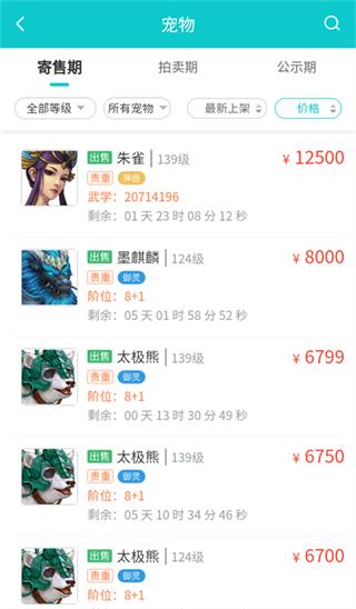 5.此外,玩家只要登陆交易平台的相应区组,就可以看到该区组内正在寄售期和公示期的所有角色。点击想要了解的角色,可以看到关于该角色的详细信息,从人物信息到宠物、守护、装备、背包等一应俱全,相信这些信息足够让道友们深入了解。