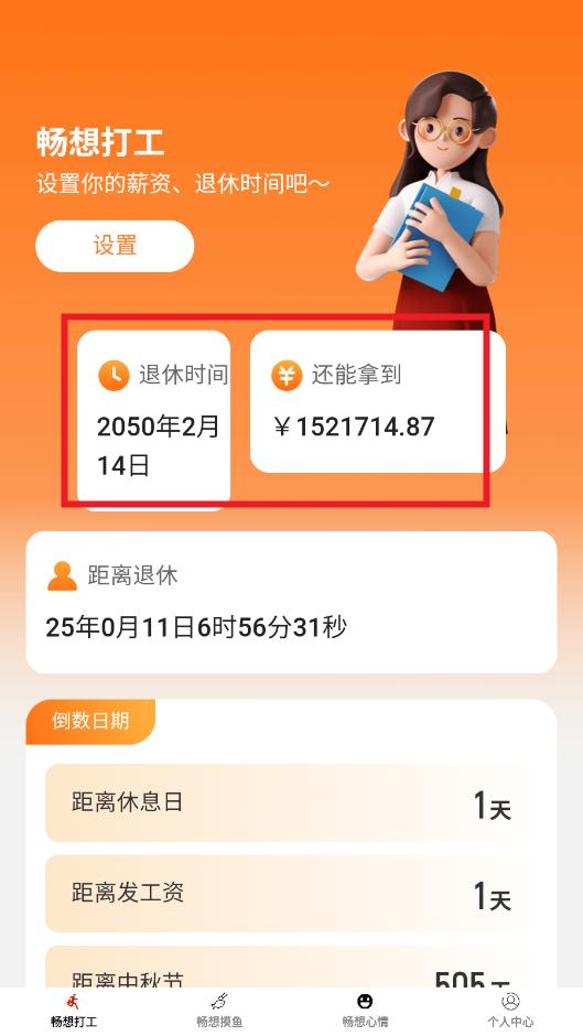 就可以查看自己退休时间,还能拿到多少钱,距离退休还剩多少时间,距离休息日,发工资日,中秋节还要多少天