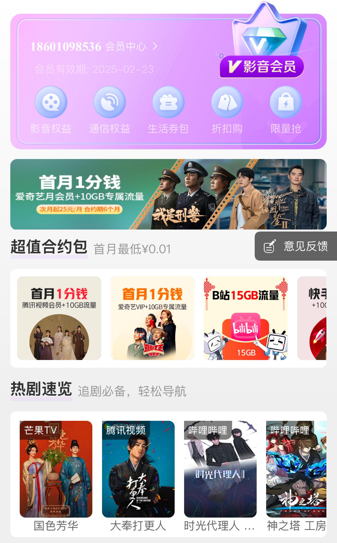5、海量权益商品,超值低价,轻松开启省钱新体验,专属流量和服务。