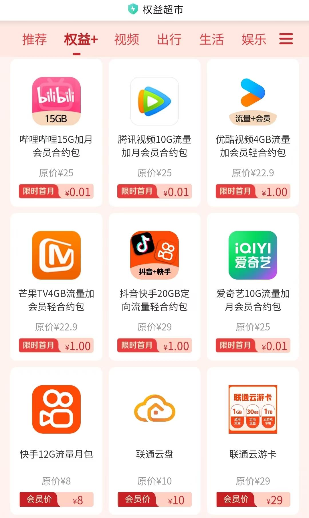 中国联通权益超市还打造垂类专区,给用户提供更丰富的内容服务,建立良好的权益生态。