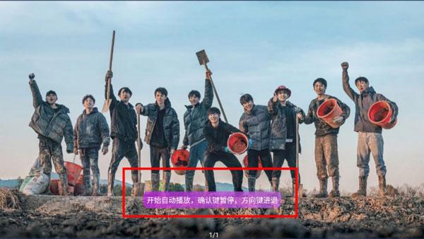 确定键暂停播放。方向键前进后退。进入图片浏览自动开始播放图片,间隔时间5秒,按键之后停止自动播放。