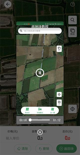 主要两个工能,画地模式和绕地模式,画地模式可以手动打点地图形成圈来测亩并且可以自动计算价格。绕地模式为人工开启后,围绕需要测量的土地行走,GPS会自动定位,最后可自动测量土地面积。