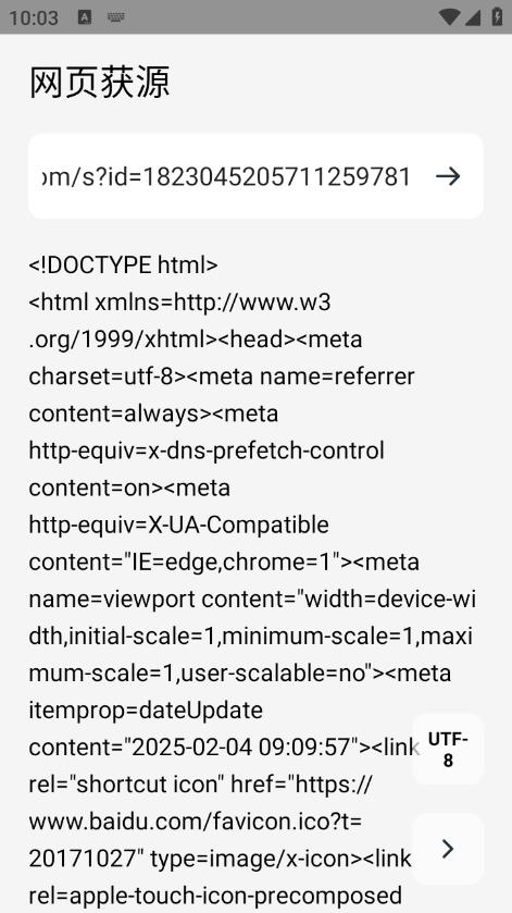 4.APP会立刻为你呈现该网页的源码