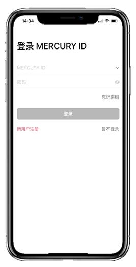 打开MERCURY安防APP,输入MERCURY ID的账号和密码,点击 登录。如果没有MERCURY ID,请点击 新用户注册,按照提示注册MERCURY ID,如下图: