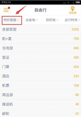 2、点击特价类型,即可了解所有的特价信息,包括机+酒、当地游、签证、门票等等。