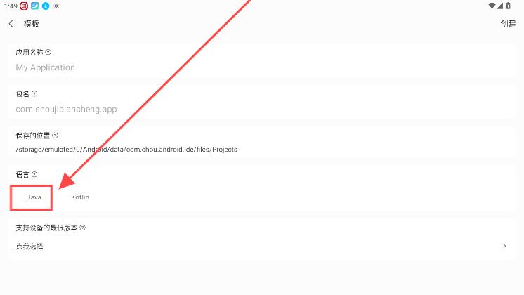 2、然后在这模板设置中将语言设置为java即可