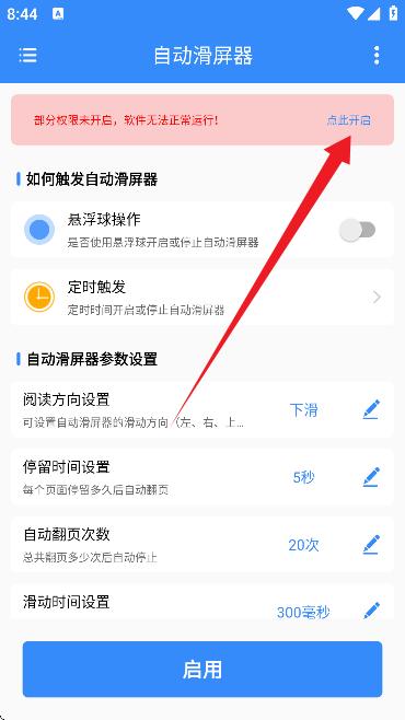 1、下载安装好这款自动滑屏器APP,然后打开,