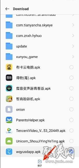 4、选择唯趣应用商店apk确定,一般都是在download文件夹中。
