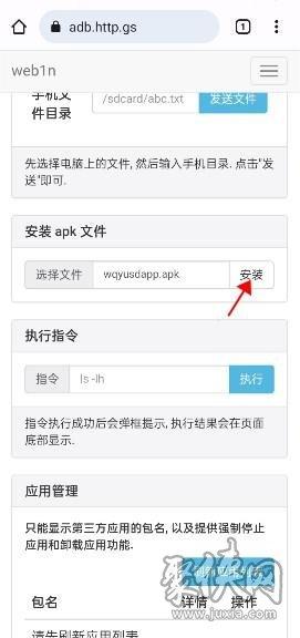 3、连接成功之后,往下划找到安装apk文件,选择文件。
