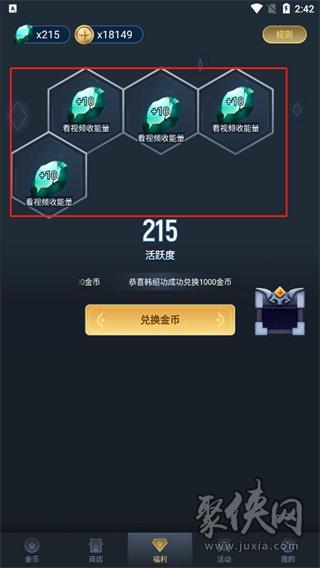 3、观看完广告后机会获得相应的活跃度,可以累积到10000活跃度。