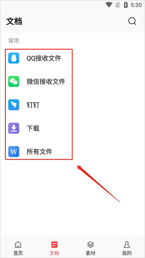 2、进入应用首页,选择“文档”。