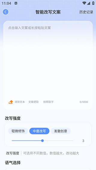 4、定制化设置:支持用户自定义关键词、语调、时态等参数,生成更符合需求的文本。