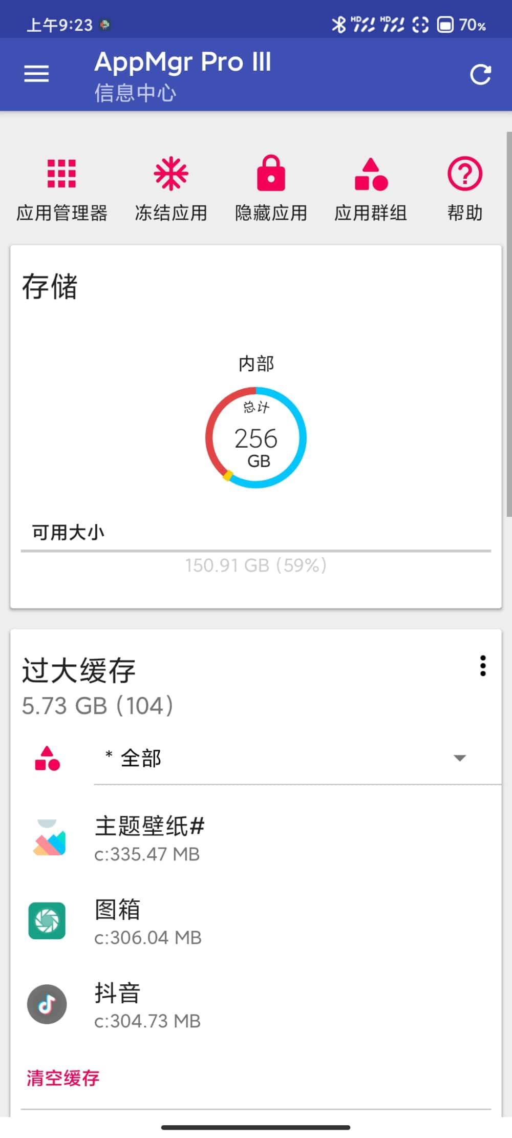 应用使用长了都会产生缓存垃圾,影响手机运行速度,这时候我们就需要把应用缓存清理一下了。「AppMgr Pro III」可以一键批量删除所有缓存,也可以单独删除某个应用的缓存。