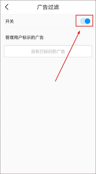4、在【广告过滤】页面,点击开关进行设置即可。