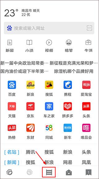 1、打开指尖浏览器app,点击首页下方的中间图标;