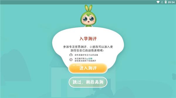 3、一旦完成注册,您可以进入软件的主界面;在这里,用户可以进行入学测评,测试孩子的专注力和专注状态;这项测试将帮助软件评估孩子的专注能力,并为他们提供个性化的学习计划;