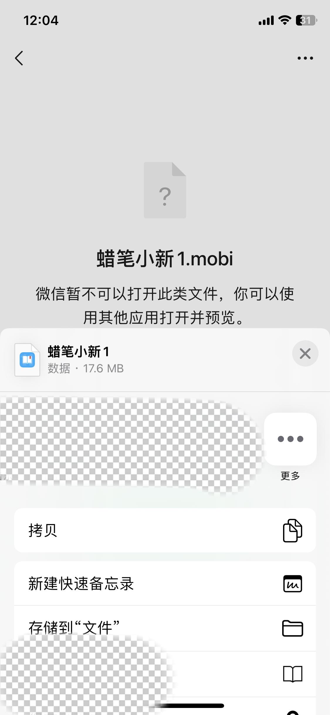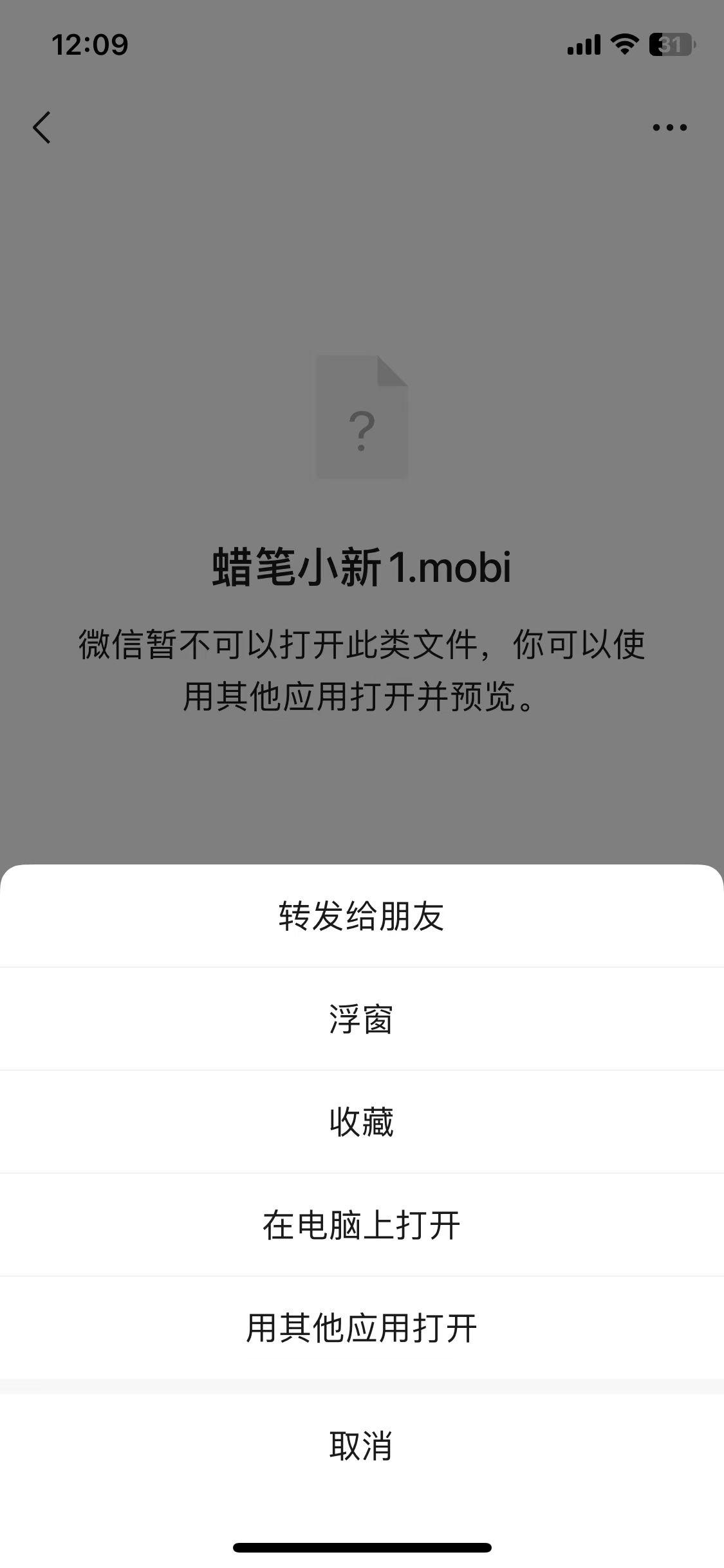 喔喔漫画同样支持从第三方软件分享漫画文件到喔喔漫画内解析查看,下面以iOS环境下的微信为例子展示: